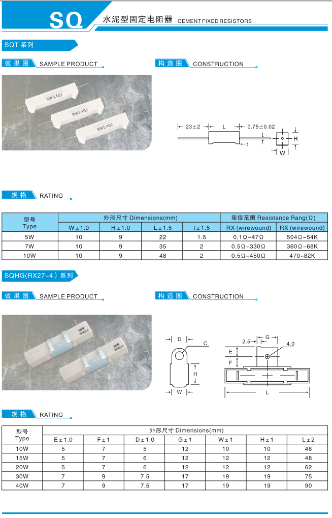 水泥型固定电阻器